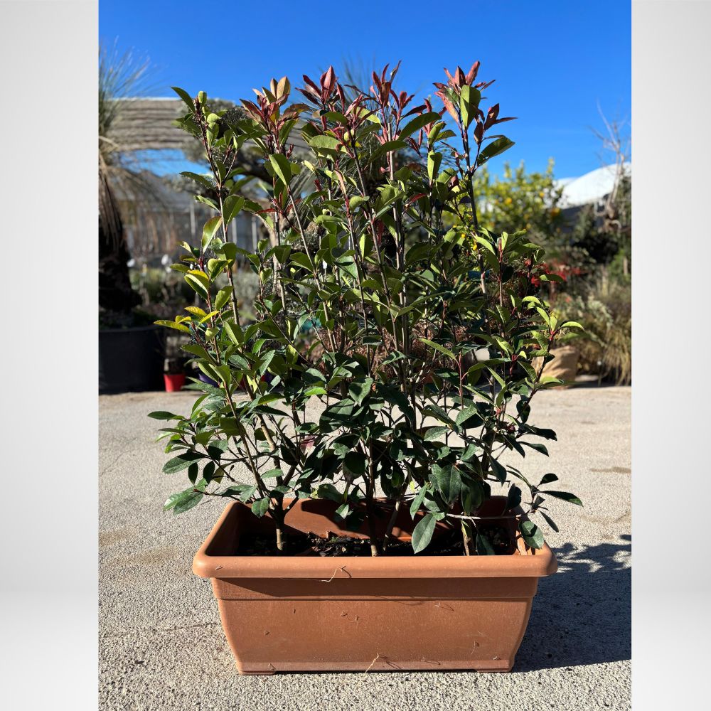 Questa pianta crea subito una barriera verde elegante e compatta: il suo fogliame si tinge di rosso intenso prima di virare al verde brillante, cresce rapidamente e trasforma il tuo spazio esterno in un rifugio riservato.