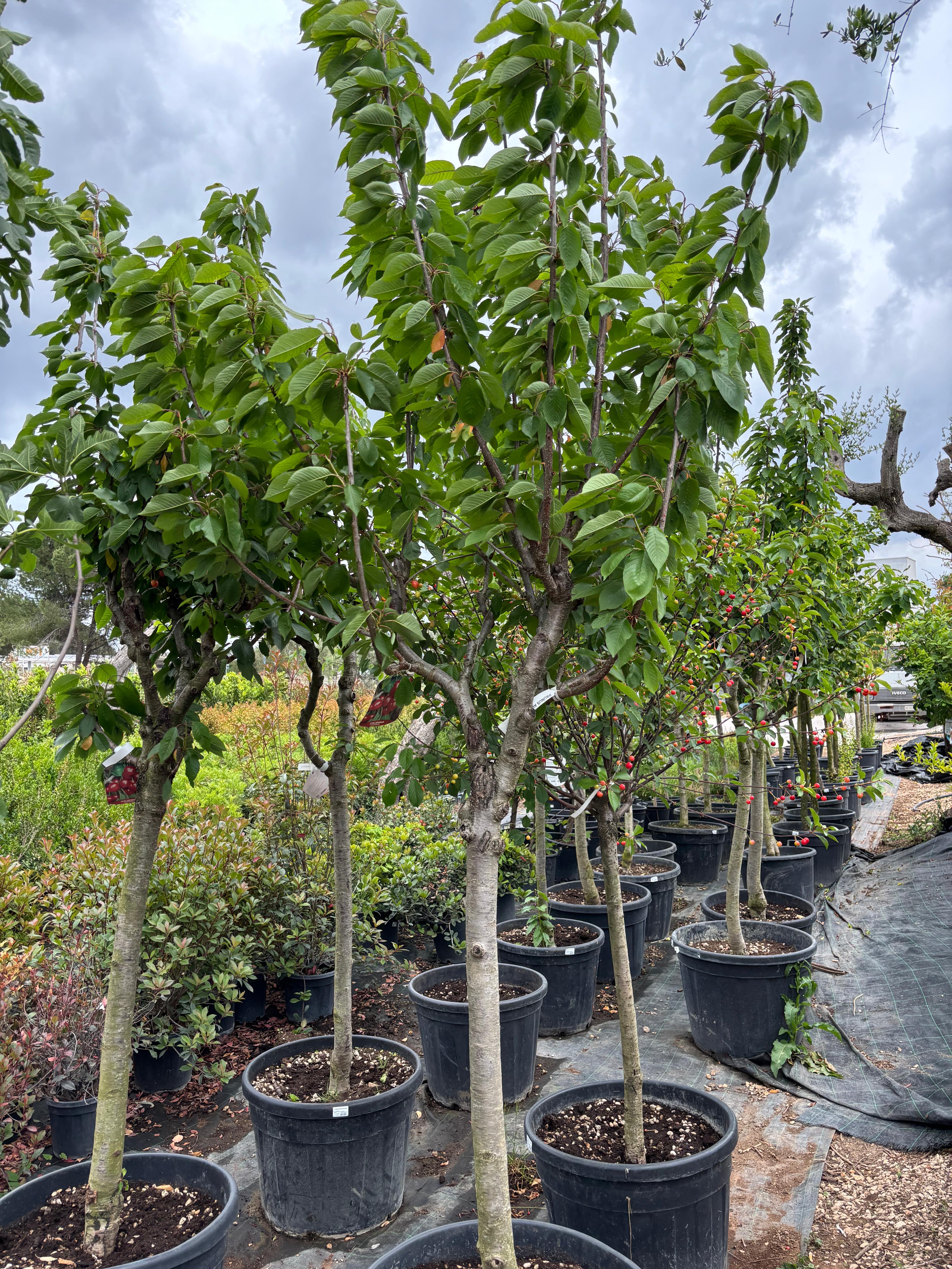 Prunus cerasus dall'amarena molto bella per la pezzatura molto grossa ed il colore rosso vermiglio intenso dei frutti. E' molto caratteristico il peduncolo lunghissimo. Perfetta la collocazione a mezz'ombra e si consiglia di innaffiare il terriccio solo dopo essersi asciugato del tutto.